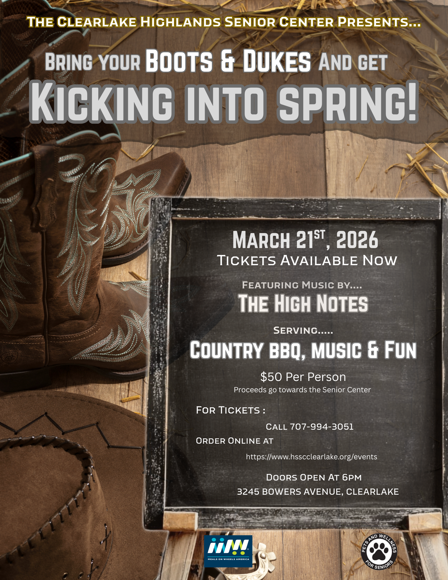 Net proceeds go to support the Meals On Wheels program of the Clearlake Senior Center/Highlands Senior Service Center